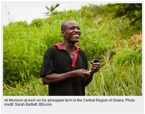 В глубине своей ананасовой плантации, раскинувшейся где-то в центральной части Ганы, сжимая в руках 2 мобильных телефона, Али Моррисон, обыкновенный африканский фермер, рассказывает историю о своей последней крупной сделке. К нему пришли торговцы и предложили 20 ганских седи (около 13 американских центов) за каждый фрукт, Али достал свой телефон и, никуда не отходя, отправил сообщение с единственным словом “ананас”. В ответ он получил прайс-лист основных ананасовых рынков страны. В тот день он заработал в два раза больше денег, чем предлагали нечестные торговцы, выиграв более 165 долларов.