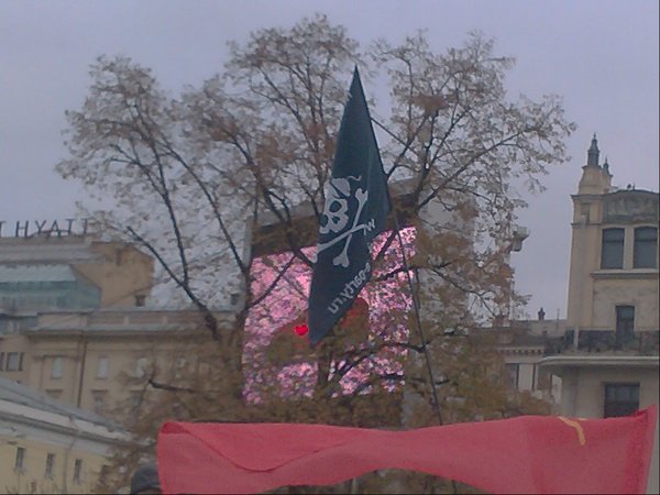 Митинг за свободу интернета. Фото Андрея Винокурова 17 ноября в Москве на Площади революции около памятника Карлу Марксу Пиратская партия России планировала провести митинг «За Луркоморье, за свободу, за вами уже выехали!». Зарегистрировать мероприятие как самостоятельное у «пиратов» не получилось, зато было получено согласие на присоединение к митингу Российской коммунистической рабочей партии (РКРП), который был согласован на этом же месте.