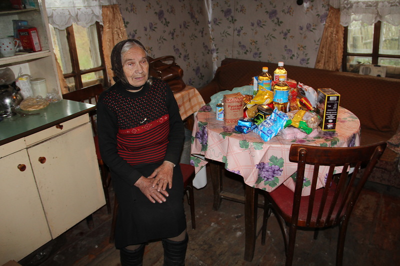 В деревне Извеково проживает Анастасия Егоровна, она одинока и живет очень бедно. Чтобы накопить себе на дрова на зиму, ей приходится отказывать себе почти во всем. Оставляем продукты и берем бабушку на заметку, будем ее навещать по возможности.