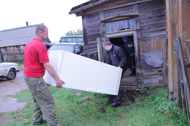 Мы уже привозили бабушке телевизор, а теперь доставили ей холодильник.