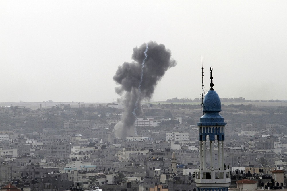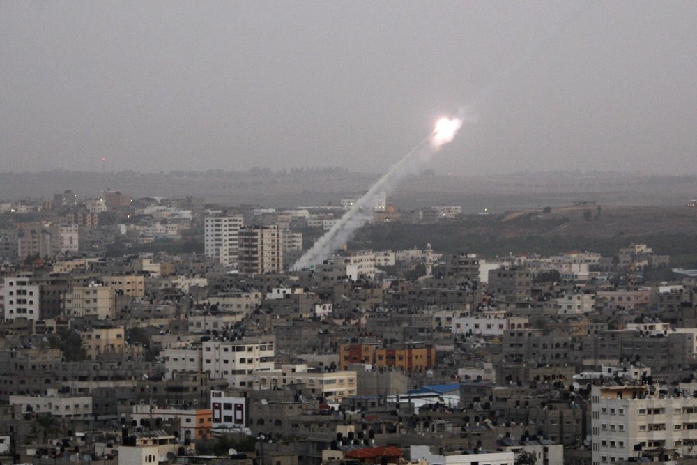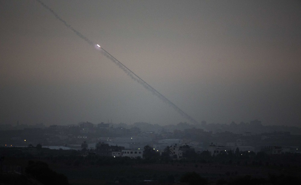 Израильская тактическая система ПРО «Железный купол» срабатывает на ракету террористов, выпущенную из сектора Газа. (Фото AP Photo/Oded Balilty)