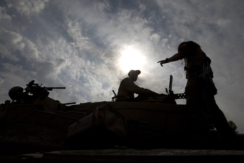 Солдаты прячутся возле машины во время очередного обстрела (Фото JACK GUEZ/AFP/Getty Images)