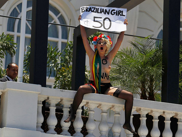 Активистки украинского движения Femen провели топлес-протест против колоссального размаха секс-индустрии в туристическом центре Бразилии Рио-де-Жанейро. Чтобы привлечь внимание к "борделизации" страны, они захватили главную террасу самого фешенебельного городского притона - Copacabana Palace, сообщается на официальном сайте движения.