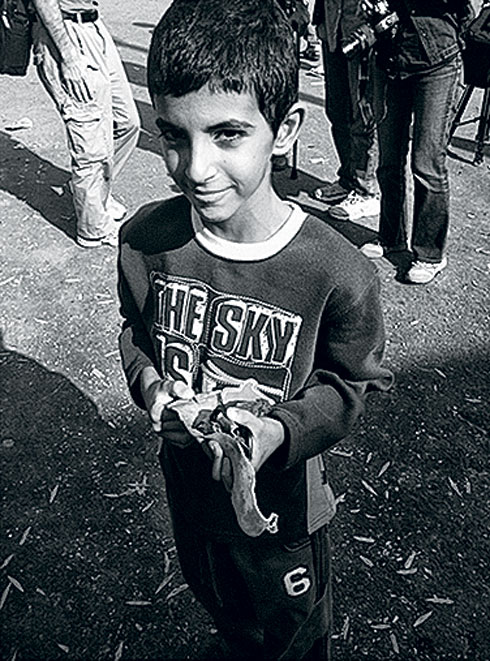 Местные мальчишки всегда успевают прибыть на место взрыва первыми. Десятилетний Амитай живет в доме напротив. Он с гордостью демонстрирует сегодняшний трофей — осколок ракеты «Кассам».