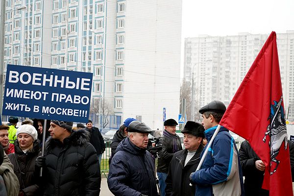 Фото: Александра Суперека/Publicpost "Военные имеют право жить в Москве!" — с таким лозунгом вышли сегодня российские военнослужащие, которые стоят в очереди за жильем с 90-х годов и не могут получить квартиры, пройдя через суды.
