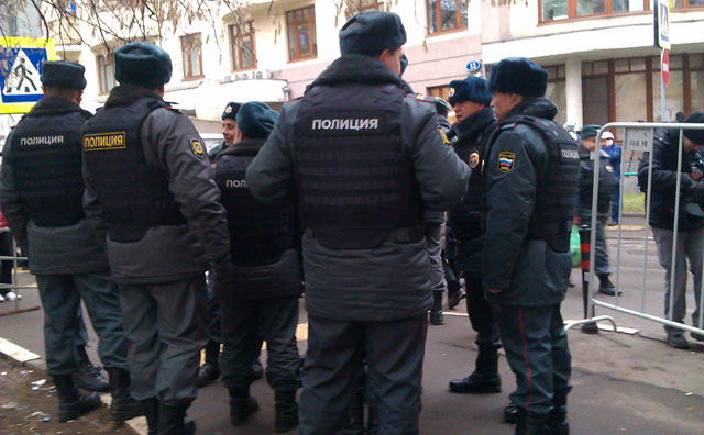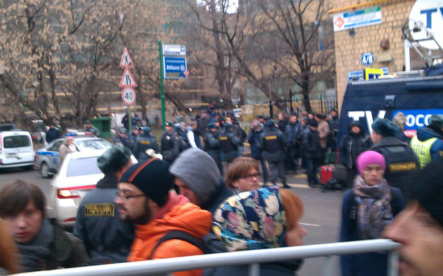 Полиция у Замоскворецкого суда Надо сказать, что к суду пытался прорваться и сам Дмитрий Демушкин, но правоохранительные органы не позволили ему это сделать. Кроме того, до начала заседания из здания вывели другого националиста - Георгия Боровикова. Судя по видео, размещенному в сети, он теперь лично знаком с отцом Агафонова.