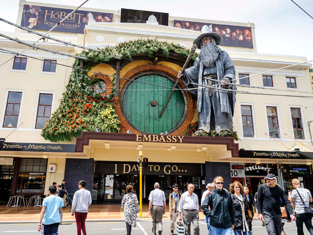 Гостей, прибывающих в аэропорт Веллингтона, встречает 12-метровая скульптура одного из героев фильма - Голлума, а фигура мудрого волшебника Гэндальфа стоит рядом с огромными часами, ведущими отсчет времени до премьеры.