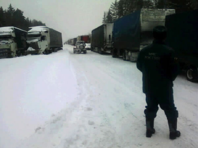 В МЧС утверждают, что на трассе "было организовано горячее питание, определены места обогрева и медобеспечения водителей большегрузного транспорта, а также организован подвоз топлива". Однако довезли не до всех. Один из водителей сообщил "Русской службе новостей": "Третий день люди стоят в много километровых пробках. Закончилась еда и вода. Дорогу никто не чистит. Сколько нам здесь ещё стоять, никто сказать не может. В туалет люди ходят прямо около машин. Антисанитария полнейшая".