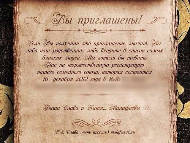 Как написала невеста в своем Twitter, торжественная церемония регистрации состоится 16 декабря, ровно в 16:16 по московскому времени. Вероятно, дата и время были выбраны в связи с тем, что 16 - это игровой номер Малафеева в "Зените".