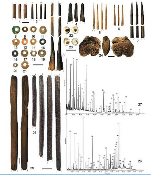 — кусок органического материала, обвязанного бечевкой, в составе которого присутствует сок молочая. Известно, что сок молочая используется охотниками-собирателями в качестве яда. Вероятно, такую штуку таскал с собой охотник, чтобы в нужный момент нанести на наконечник стрелы ядовитый состав.