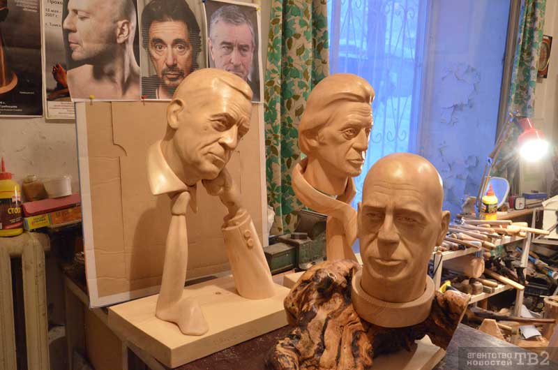Томский скульптор Леонтий Усов готовит галерею из 10 деревянных лиц звезд Голливуда.