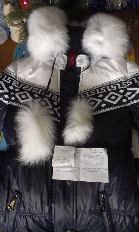 Добавила к оставшейся от прежних покупок сдаче немного денег, купила для девочки теплый зимний пуховик с мехом. Теперь не замерзнет. :)