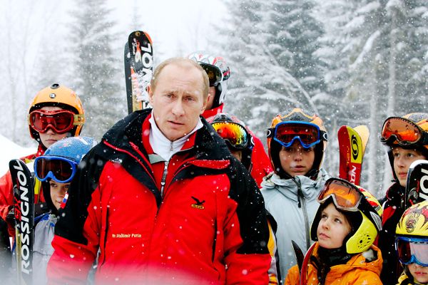 Президент России Владимир Путин во время общения с детьми на горнолыжной трассе в Красной Поляне. Фото: ИТАР-ТАСС