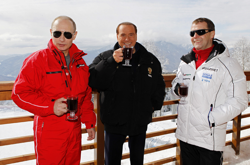 Путин и Медведев любят время от времени кататься на лыжах на курорте "Красная поляна" и зовут с собой зарубежных коллег. Например, в прошлом году они катались в компании бывшего премьера Италии Сильвио Берлускони.