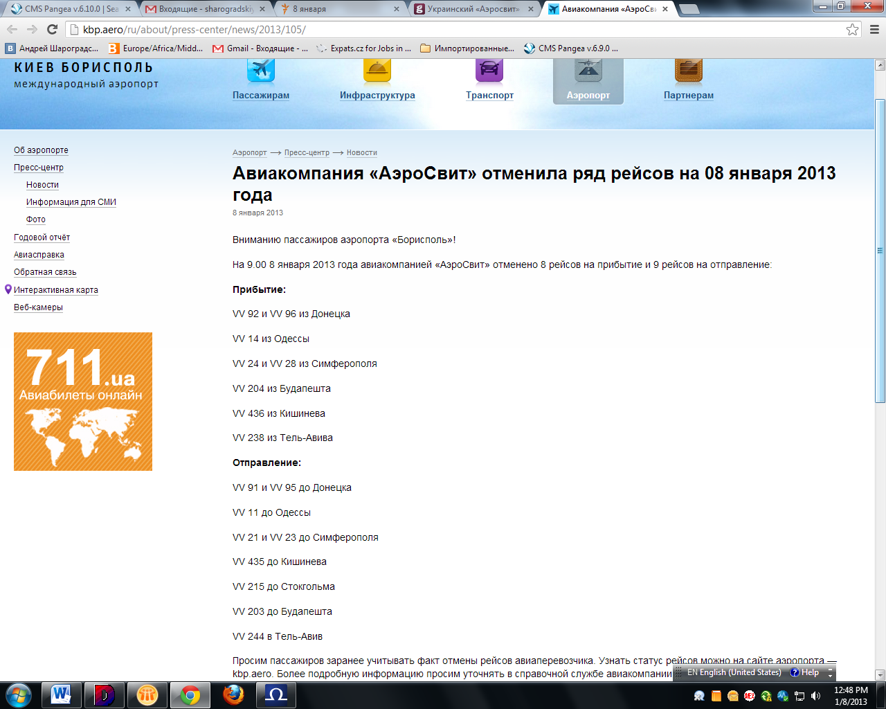 Вот такое сообщение сейчас вывешено на сайте киевского аэропорта "Борисполь". Со всеми вытекающими последствиями для пассажиров, купивших билеты на эти рейсы.