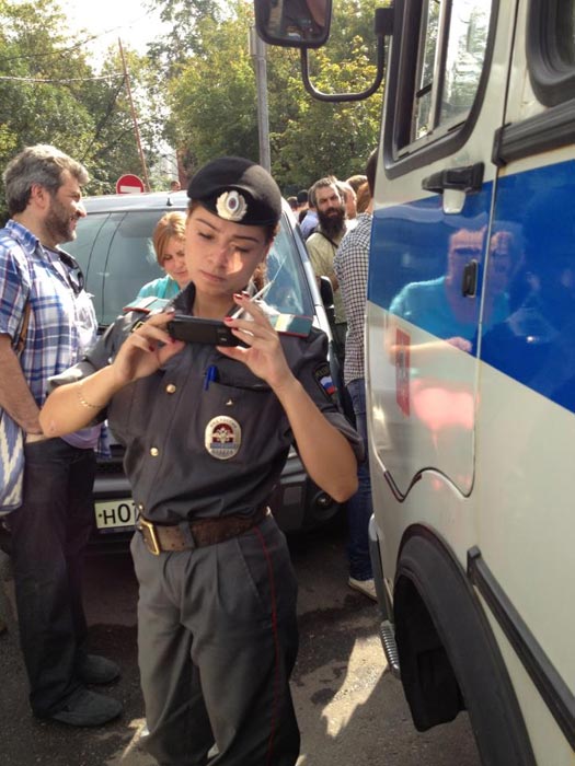 Оказалось, что в августе прошлого года я опубликовала здесь на стенке фото одной девицы в форме сотрудника полиции. Facebook ее куда-то дел, но я облегчу задачу и опубликую фотку еще разок. Снято это было 17.08.2012 у автозака, в котором в то время пребывал чемпион мира по шахматам Гарри Каспаров. Автозак стоял недалеко от Хамсуда, где судья Сырова выносила приговор Пусям за бесовские дрыганья. Девица в полицейской форме вышла из автозака покурить, что меня возмутило. Это я могу курить где хочу — ведь я не представитель власти во время исполнения обязанностей, я не должна выполнять должностные инструкции и закон о полиции. А она должна. Вот и Госдума меня в этом поддерживает, как ни смешно. (Комитет Госдумы по охране здоровья предложил внести поправку в закон о полиции, разрешающую сотрудникам правопорядка "свободно подойти к курящему в неположенном месте и остановить его".) Стало быть, сама полиция никак не должна курить в неположенном месте, на виду у детей, коих там было предостаточно?