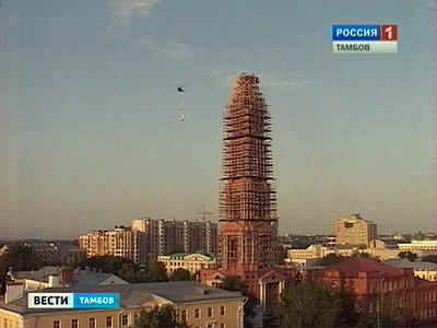 Если вы засомневались и подумали о том, что я вас нагло обманул, то вы ошибаетесь — вот она, "горящая" колокольня Казанского монастыря в Тамбове (правда, еще на стадии постройки).