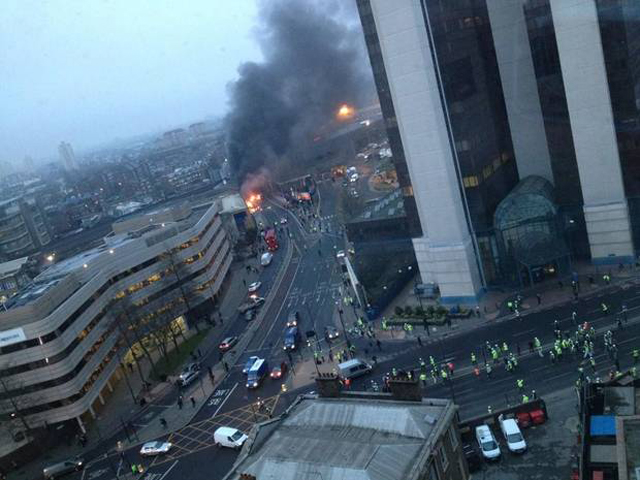 На место происшествия, рассказывают свидетели, работают пожарные бригады, дым стелется вдоль реки Темзы. Для оказания помощи пострадавшим на место происшествия выехали бригады медиков. Всего задействовано около 22 машин, оказывающих помощь при пожаре и медицинскую помощь. Вокзал "Воксхолл" закрыт для пассажиров.