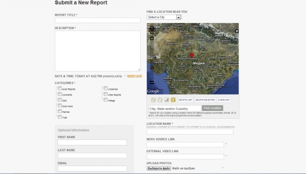 Сегодня данные поступают на сайт практически из всех возможных источников: посредством sms сообщений, мобильных приложений, доступных как для iOs, так и для Android, из уже упомянутого Twitter, а также непосредственно с самого сайта. В скором времени станет доступна услуга телефонного звонка.