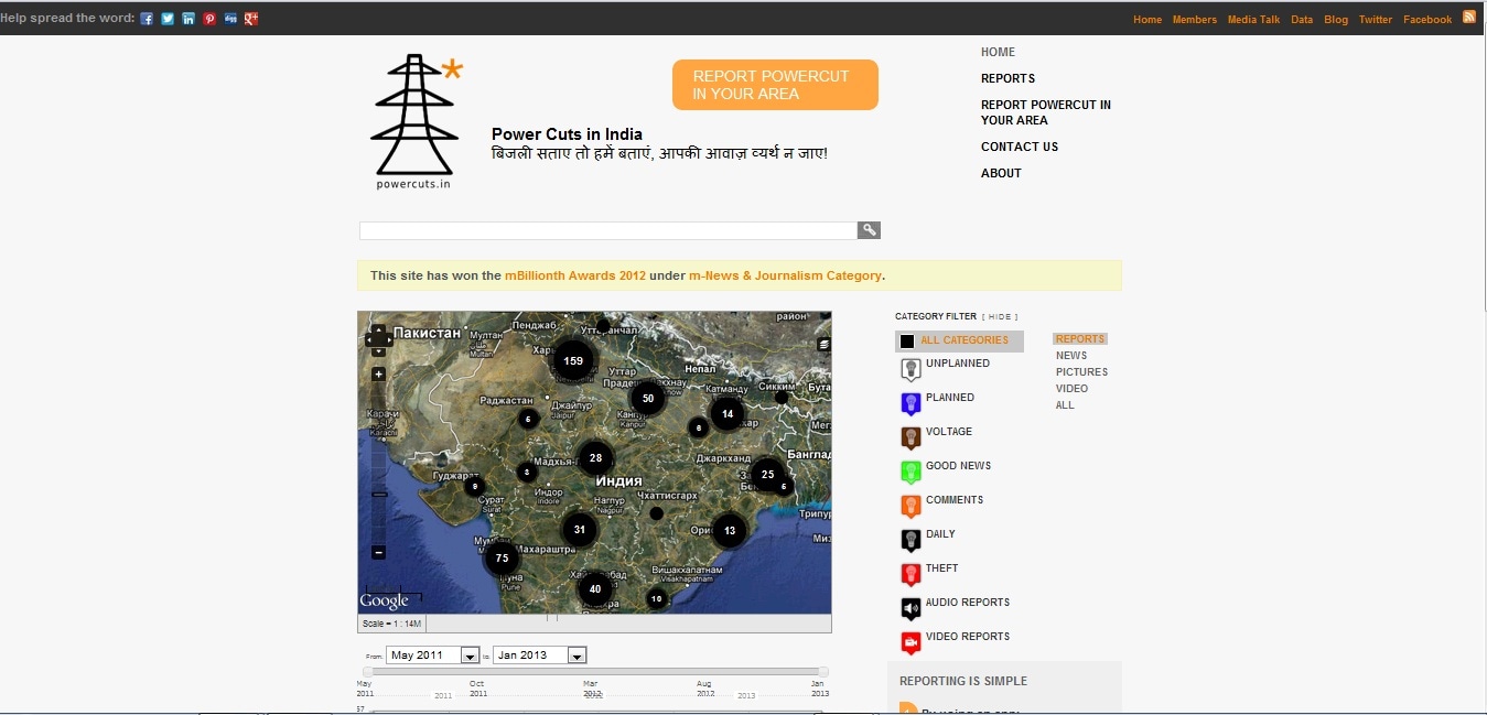 История «Power Cuts in India» началась с простой идеи, которая со временем выросла в крупнейший национальный проект, ярко продемонстрировавший возможности краудсорсинга. Успех проекта объясняется, в первую очередь, его темой, ставшей насущной практически для каждого жителя страны.