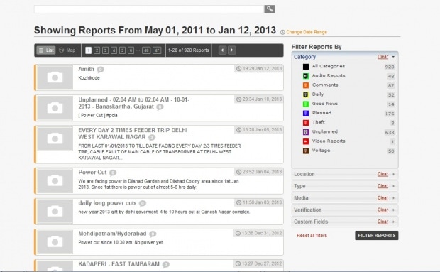 После появления первых сообщений, один из пользователей открыл страницу, где на карте отмечались все инциденты. За основу была взята платформа Ushahidi, быстро нашлись и модераторы, которые обеспечивали анализ поступающей информации, ее систематизацию по различным категориям.Тема оказалась настолько актуальной, что краудсорсинг смог показать себя во всей своей красе. Не зря Power Cuts занял первое место на mBillionth Awards 2012 в категории m-News Journalism.