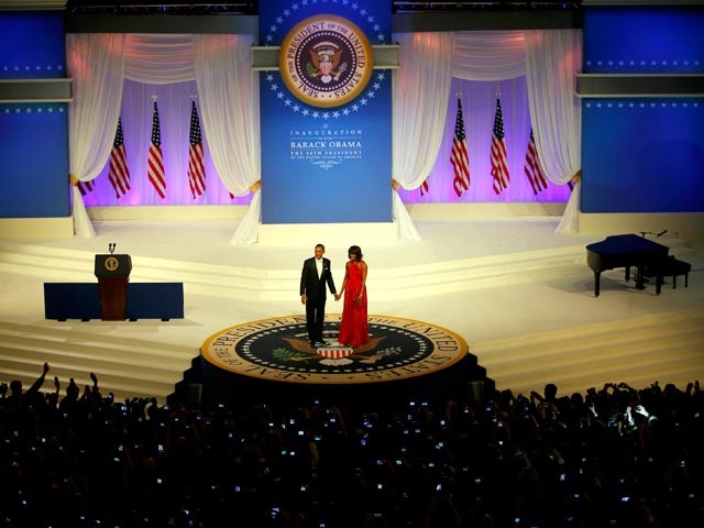 После торжественной церемонии инаугурации переизбранный президент США Барак Обама провел вечер на балу в кругу 30 тысяч "близких друзей", как отмечает CNN. Фуршет был организован при строжайшей экономии: гости жаловались на "птичьи" порции и невозможность танцевать. Впрочем, приглашенные могли развлекать себя разговорами о жвачке президента и настроении его жены. Первая леди, кстати, была неотразима: ее выход под конец приема вызвал бурю восторга.