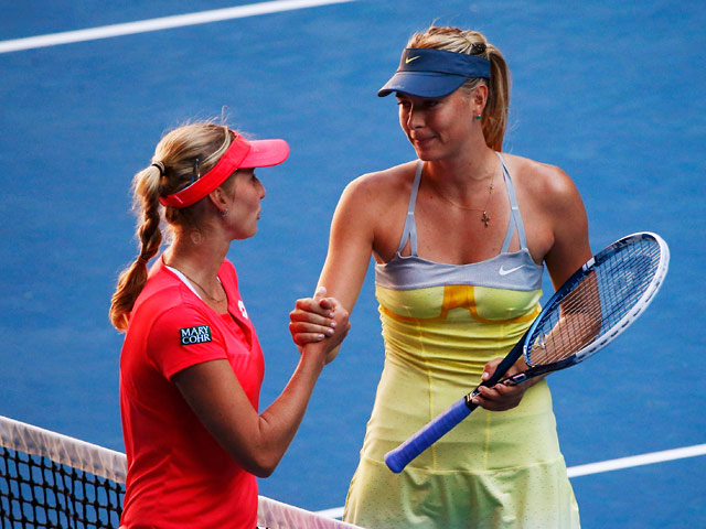 В четвертьфинале Мария, посеянная на турнире под вторым номером, уверено переиграла свою соотечественницу Екатерину Макарову (19). Шарапова пять раз брала подачу соперницы, в то время как та сумела сделать лишь один брейк.