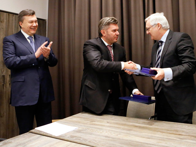 В Давосе в присутствии президента Украины Виктора Януковича и премьер-министра Нидерландов Марка Рютте подписано соглашение между компанией Shell и компанией "Недра Юзовская" о разделе продукции от добычи сланцевого газа на Юзовской площади в Харьковской и Донецкой областях.