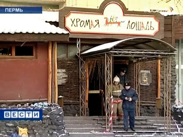 Пожар в пермском клубе "Хромая лошадь" произошел 5 декабря 2009 года, погибли 156 человек. Как установило следствие, пожар произошел в результате применения в пожароопасных условиях пиротехнических изделий, а также имевшихся в заведении нарушений правил пожарной безопасности, строительных норм и правил.