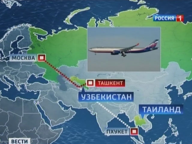 Пассажирский самолет "Аэрофлота", летевший из Москвы на остров Пхукет (Таиланд), вынужден был приземлиться в Ташкенте (Узбекистан) из-за дебоша, который устроил пьяный пассажир.