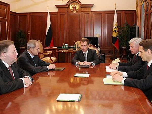 Совещание по вопросам деятельности судов. 2008 г. Слева - Антон Иванов и Валерий Зорькин. Справа - Вячеслав Лебедев и Сергей Нарышкин. В центре - Дмитрий Медведев. Фото: пресс-служба Президента России Прочитанные недавно - перед четырехчасовым семинаром по отдельным проблемам правоохранительной системы - слова российского премьера поразили меня как юриста (это одна из моих точек зрения, требующая переключения от (надеюсь) экономиста и (все еще не) социолога):
