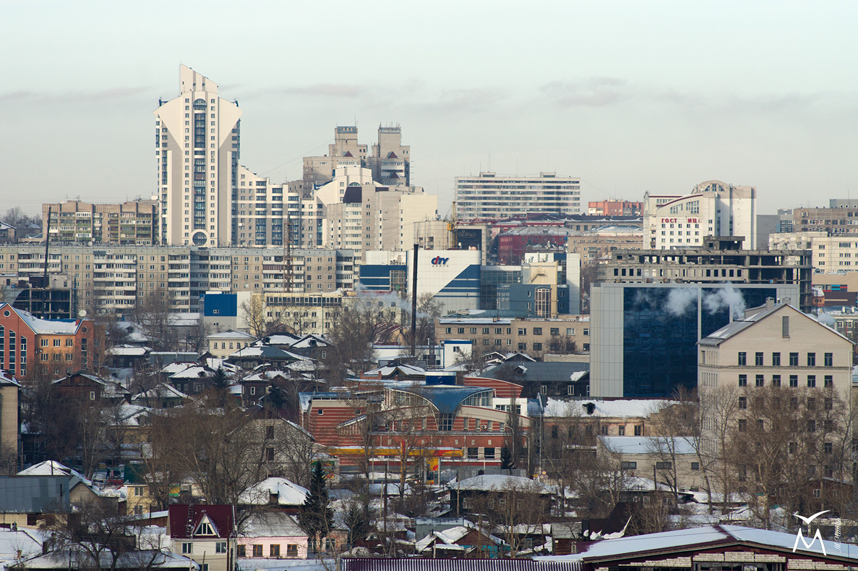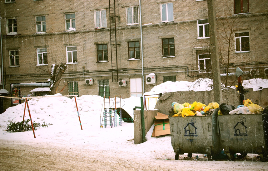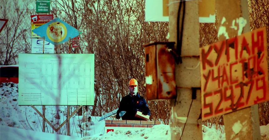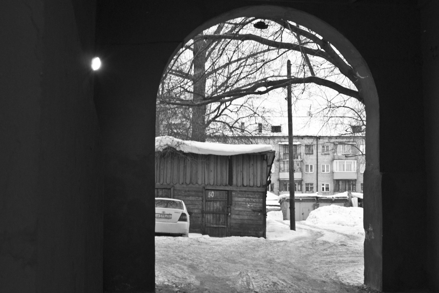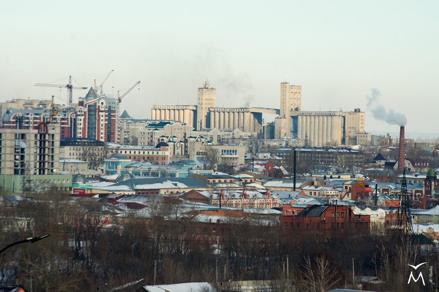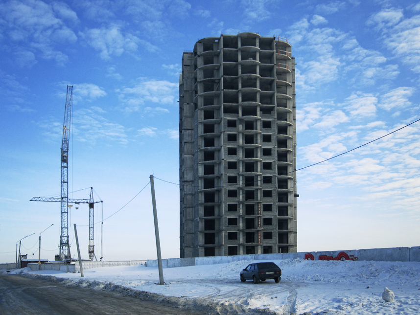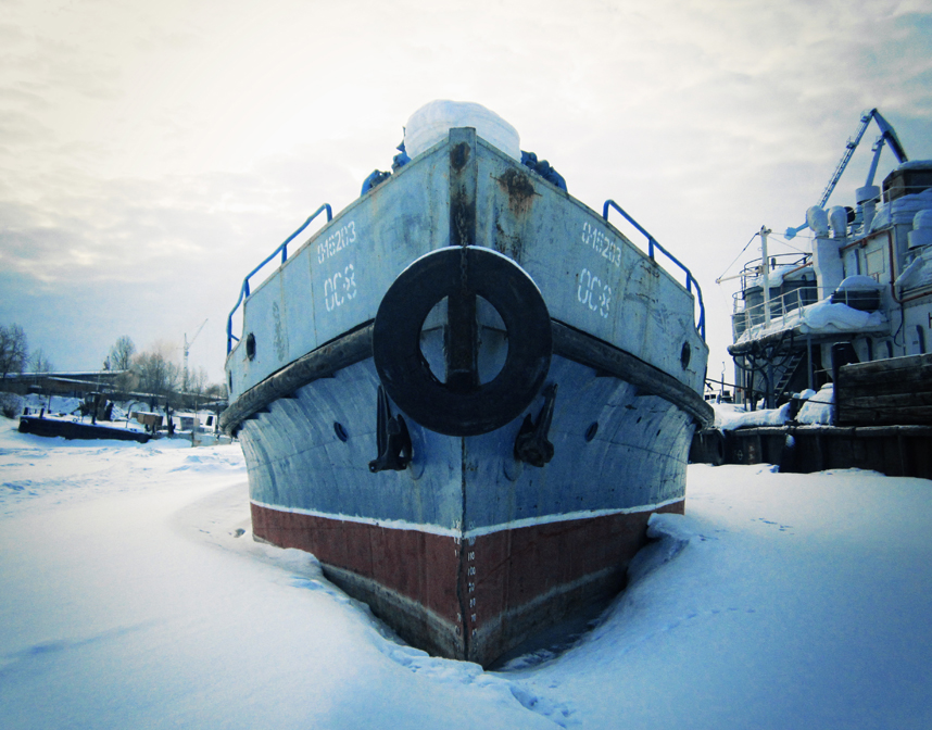 Денис Кочетков. Речпорт в Ковше и Заковшовье. Спят пароходы в ожидании весны. Обшарпанные сиденья речной веранды ждут пассажиров. На другой стороне Ковша бесконечной вереницей грузовики везут песок на улицы и стройки города. В самом устье Барнаулки высится печальной черной башней на фоне синего неба вечный недострой-многоэтажка.