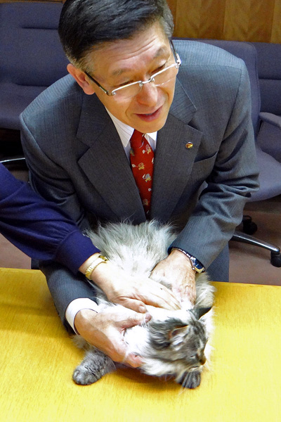 Норихисе Сатакэ известен своей любовью к кошкам — в резиденции губернатора проживает уже семь животных. По словам очевидцев церемонии, чиновник был в восторге от своего нового русского питомца.