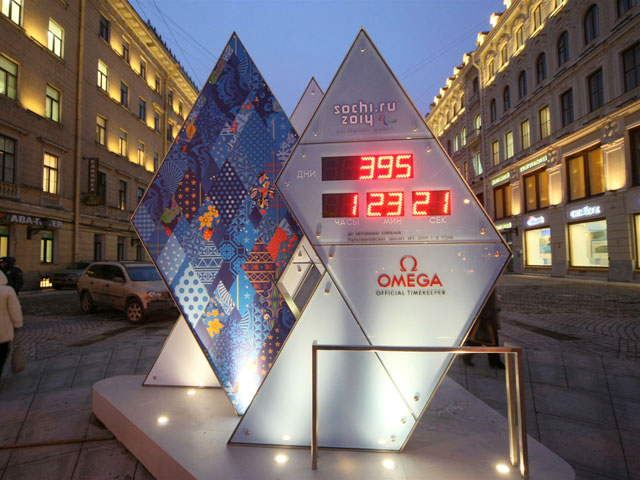 Запуск обратного отсчета времени до старта Игр-2014 также произведен в Санкт-Петербурге, Нижнем Новгороде, Ростове-на-Дону, Екатеринбурге, Новосибирске и Пятигорске.