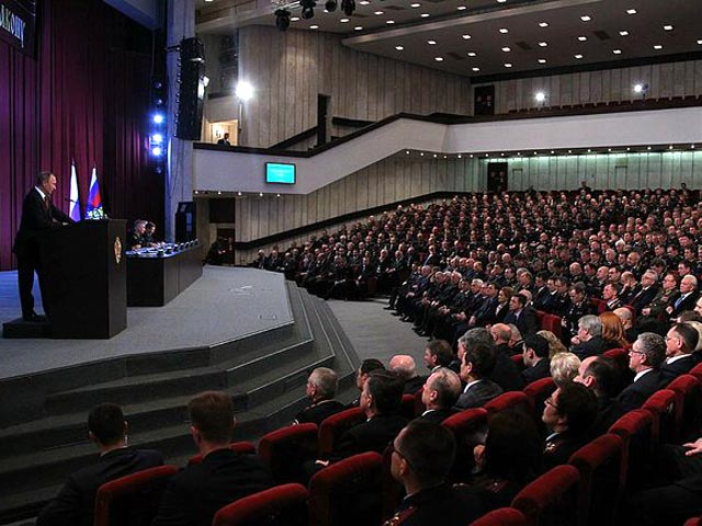 Президент России Владимир Путин выступил перед коллегией МВД, указав министерству на цели и задачи, не забыв при этом перечислить заслуги. В частности, бюджет ведомства был увеличен вдвое в 2012 году, зарплаты и материальное обеспечение правоохранителей улучшилось, миллиарды рублей выделяются на решение жилищных проблем сотрудников, но надо продолжать укреплять престиж службы в органах, а также материальную и моральную отдачу.