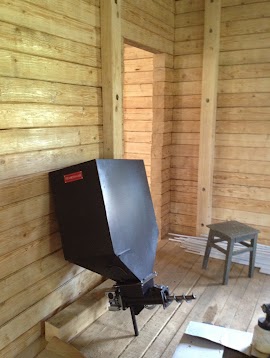 Это в малой гостиной стоит бункер для пеллет от пеллетного котла. Вещь, могу с уверенностью сказать, замечательная.