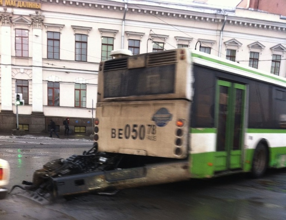 Фото и видео дня: на Тучковом мосту у автобуса выпал двигатель