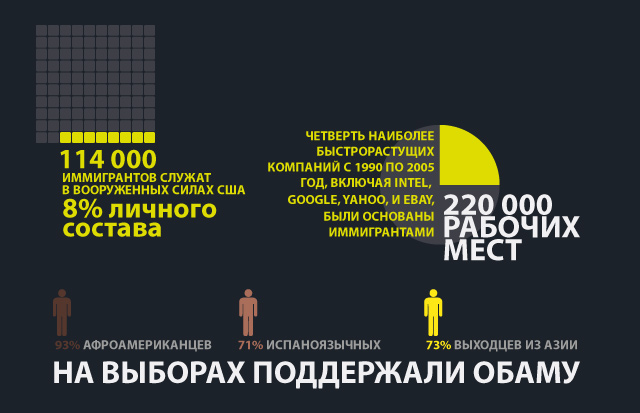 Часть республиканцев видит выход в смягчении риторики по проблеме нелегальных иммигрантов. Это одна из причин, почему президент Обама рассчитывает на успех иммиграционной реформы. В беседе с руководством газеты Des Moines Register в прошлом году Обама заявил: “Если я выиграю, то в значительной степени из-за того, что республиканский кандидат и партия настолько оттолкнули самую быстрорастущую демографическую группу страны, испаноязычную общину. Джордж Буш и Карл Роув (видный республиканский стратег) достаточно умны, чтобы понять меняющуюся природу Америки. Так что я уверен, что они будут глубоко заинтересованы в этом”.