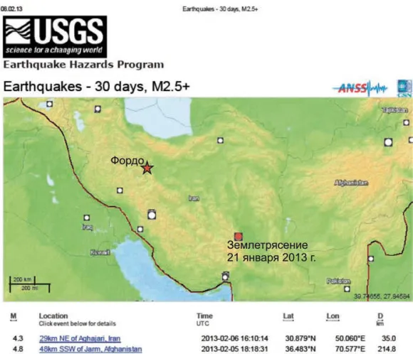 Возникает вопрос, а почему? Ответ, по-видимому, до очевидного прост. Такой взрыв не мог не быть зафиксирован сейсмическими станциями, если конечно информация о мощности воздействия не является ложной. На месте расположения ядерного объекта в Фордо никаких сейсмических событий зафиксировано не было ни до, ни после 21 января [3–5]. Единственное сейсмическое событие 21 января произошло почти в 500 км к юго-западу. Его магнитуда оценена в 5,3, а глубина – 31,9 км. По этой причине никто всерьез, в тех же США, информацию о взрыве не воспринимает.
