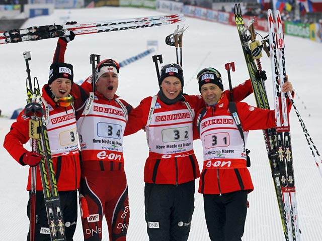 Мужская сборная Норвегии выиграла эстафетную гонку на чемпионате мира по биатлону в чешском в Нове-Место. Норвежский квартет (Уле-Эйнар Бьорндален, Хенрик Л'Абе-Лунд, Тарьей Бе и Эмиль Хегле Свендсен), использовав пять дополнительных патронов, показал время 1 час 15 минут и 39 секунд.