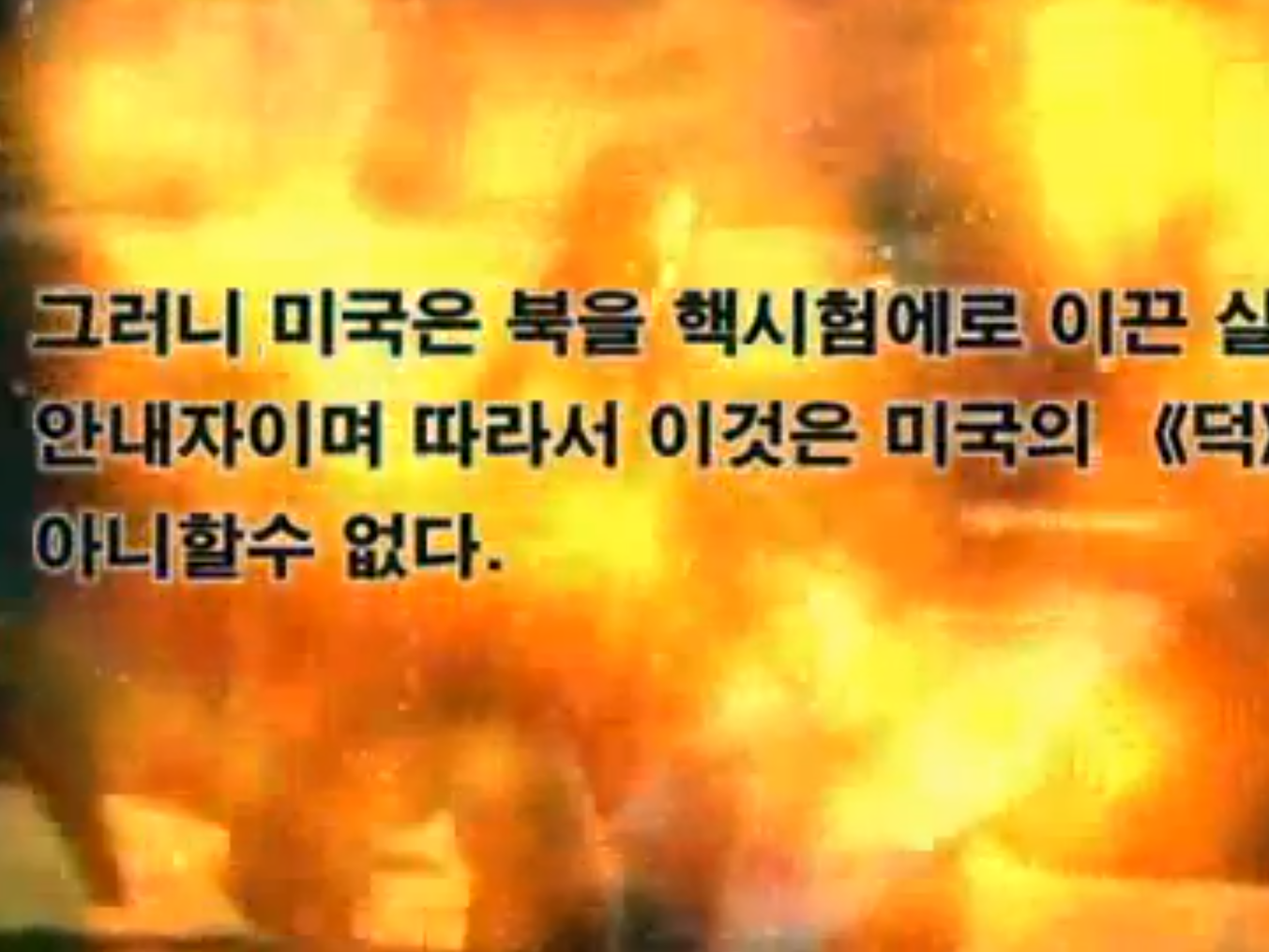 Как отмечает «Интерфакс», текст, который периодически появляется в видео, гласит: «США практически привели КНДР к проведению ядерного испытания, которое служит сдерживающей силой».