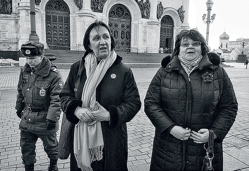 Ирина Карацуба и Елена Волкова у храма Христа Спасителя