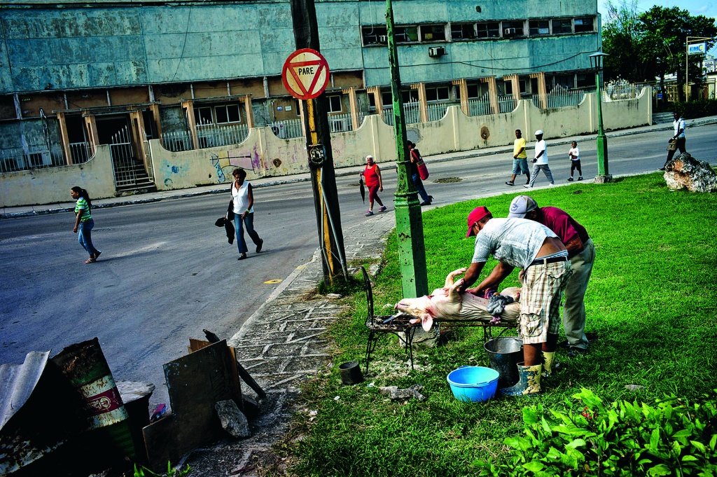 Чтобы уложиться в те самые $100, кубинец идёт на чёрный рынок. Вернее, чёрный рынок сам приходит к нему: продукты, украденные на фабриках, в магазинах, портах и президентских дворцах, разносятся поставщиками прямо по домам. Куба — страна воровства, украсть здесь — значит выжить. По связям купить можно все: от айфона до презервативов, но все это тоже стоит денег, хотя и дешевле, чем в супермаркете. Тот же самый рис на черном рынке стоит 10 песо ($0,5). «Каждый поставщик продает свои продукты, — объясняет Лесване, — одни — овощи, другие — одежду. Но приходится иногда ходить и в магазин: рынок ненадежен — то густо, то пусто».