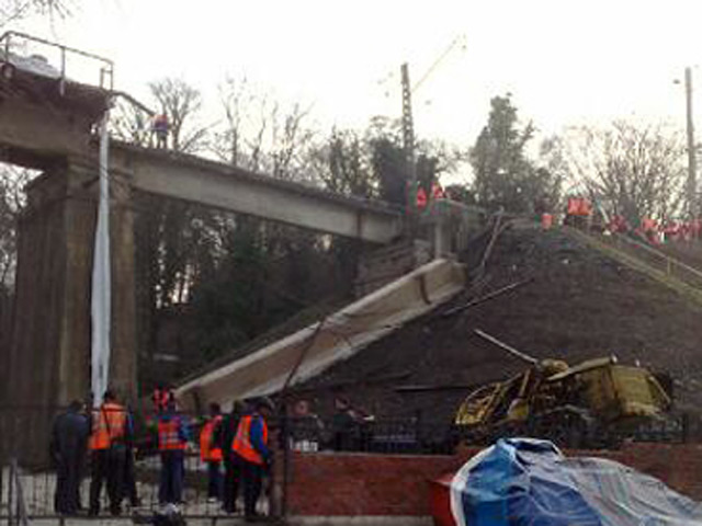 Под Сочи во время ремонта бульдозер зацепил и обрушил железнодорожный мост (ФОТО)