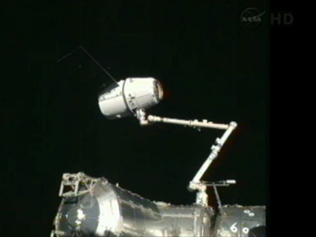 Как и в предыдущих полетах, Dragon сблизился с МКС на расстояние 10 метров, после чего астронавты Кевин Форд и Том Машберн сначала захватили его с помощью руки-манипулятора, а затем специалисты наземных служб пристыковали его к станции.