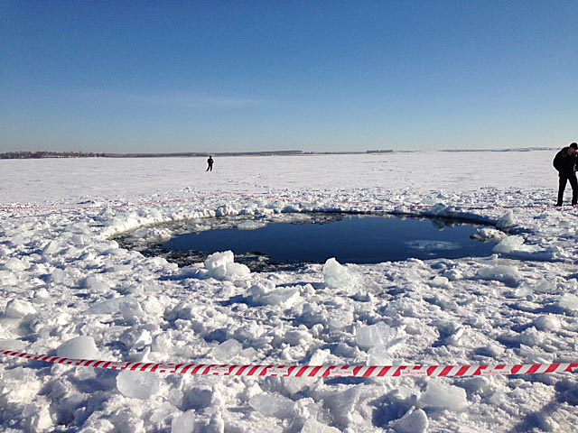 В конце февраля было объявлено, что на дне озера водолазы нашли несколько воронок, образовавшихся в иле. Но из-за толстого слоя ила - около трех метров - рассмотреть осколки метеорита не удалось.