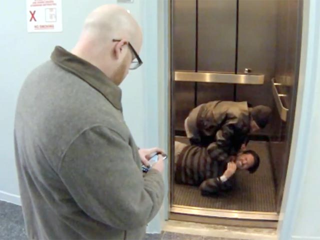 Жителей Нью-Йорка жестоко испытали на храбрость, подстроив "убийство в лифте" (ВИДЕО)