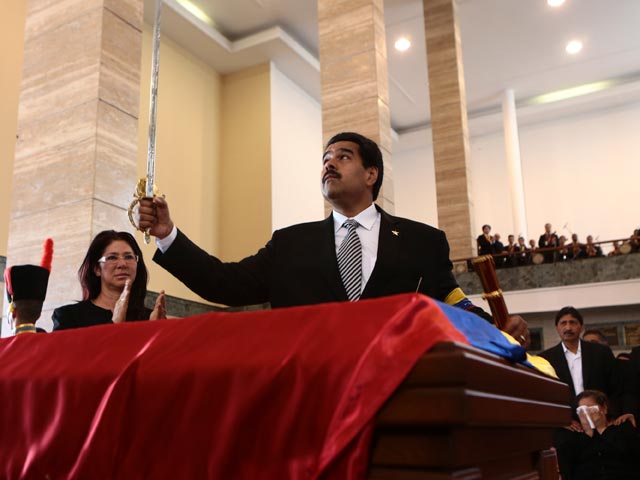 Встав перед гробом, Мадуро достал из кармана миниатюрную конституцию Венесуэлы и поклялся, что выполнит данное Чавесу обещание. Обращался он попеременно то к команданте, то к его матери донье Элене.