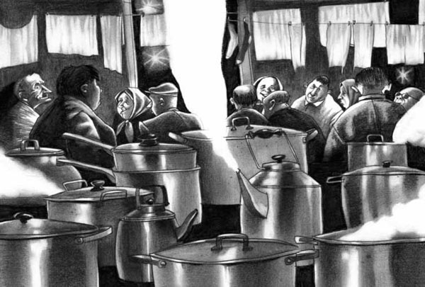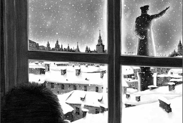 Но все это – общечеловеческое, а нужно еще что-то, что помогло бы разобраться с прошлым нашей страны. До «Сталинского носа» ближе всего к этому подошла «Стена» чешского художника Петра Сиса (Самокат, 2010), и многие ругали ее за однозначность. По одну сторону стены - все серое и ходят строем, там царит глупость, недоверие, коррупция, бесправие, угнетение. По другую – все разноцветное, воля, достоинство, честь, гордость, искусство. В 1968-ом в стене на время появилась брешь – и стало можно носить длинные волосы и ботинки на платформе, сходить на концерт Beach Boys и съездить в Англию. «Стена» все сильно упрощает – ведь уже ясно, что можно носить платформы, ездить в Англию и при этом жить в царстве бесправия и глупости. А вот «Сталинский нос» прекрасно объясняет, как могут сочетаться декларация благих намерений и злодеяния, любовь и предательство. Нет такого, чтобы была абсолютно благополучная, правильная сторона, на которой можно спастись, если при этом существует сторона несчастная.
