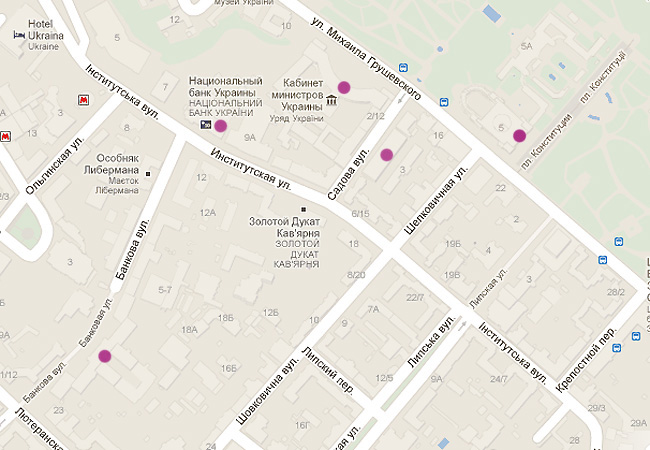 Главная особенность украинской политики в том, что любой очередной срез ситуации полностью дать нельзя. По техническим причинам: в полном объеме это было бы размером с "Войну и мир" (да, именно только текущий срез), а в коротком варианте – ну, "Анна Каренина". Потому что, во-первых, там все чрезвычайно компактно, см. карту выше, фиолетовыми пятнами отмечены центры власти. Слева направо: Администрация президента, далее два подписанных – Нацбанк и Кабмин. Далее, на Садовой – здание Комитетов Рады, далее - сама Рада. Для понимания масштаба: длина улицы Садовой, на которой расположены Комитеты – 200 метров.